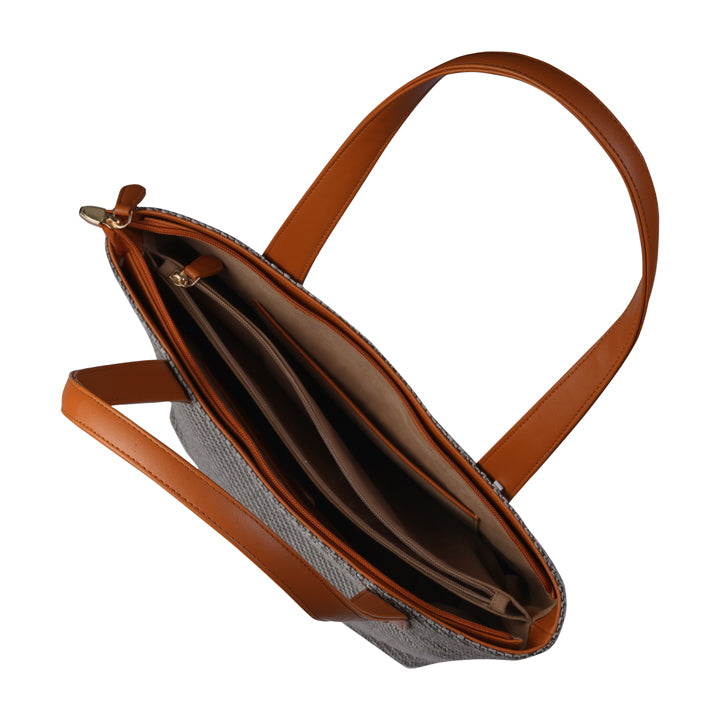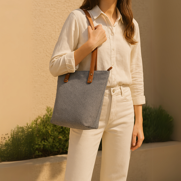 This sophisticated tote bag features a textured finish with sturdy dual handles and gold-tone hardware. Spacious and stylish, it’s perfect for daily use or casual outings.