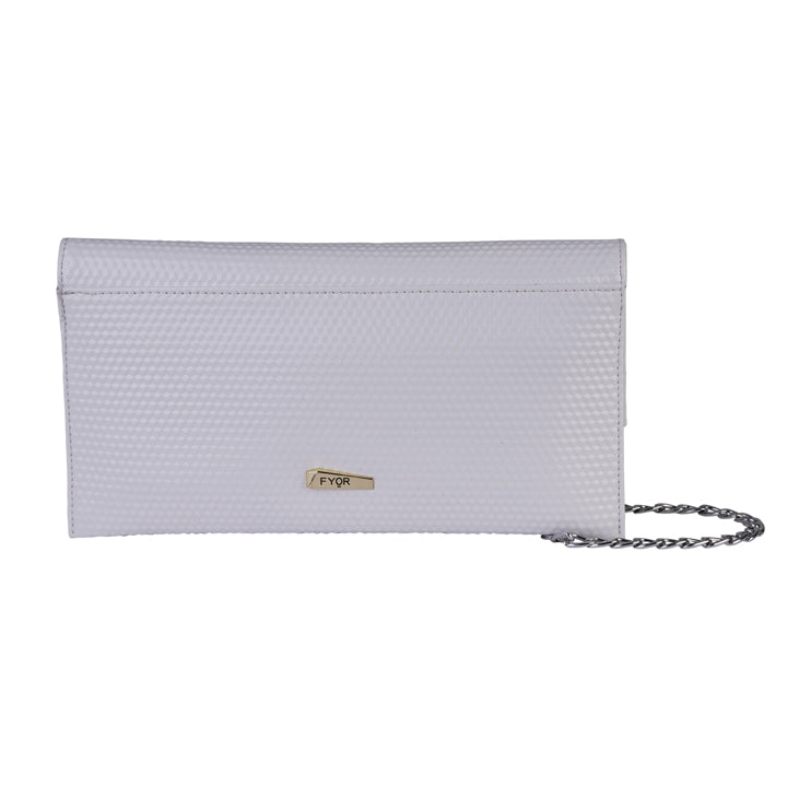 Turn heads with this dazzling metallic clutch featuring a textured finish and a compact silhouette—perfect for parties or evening outings.