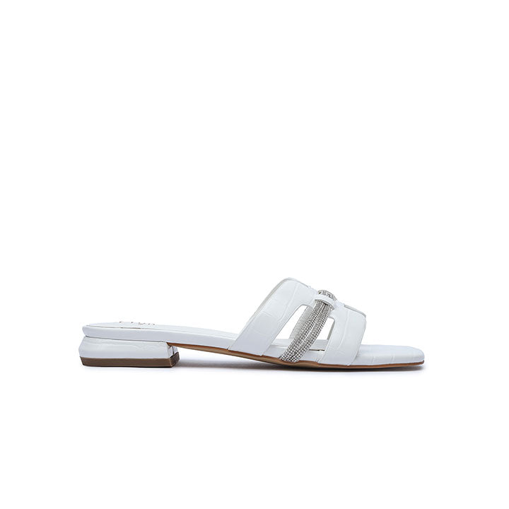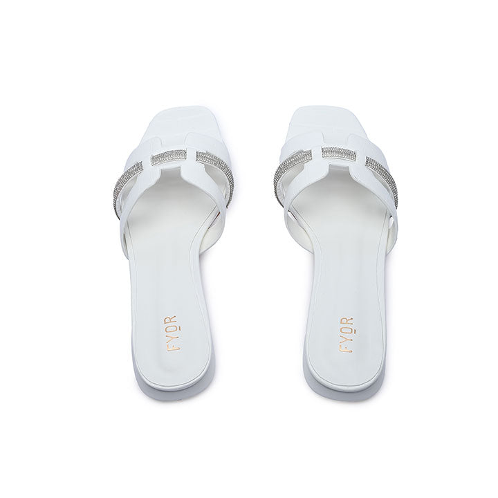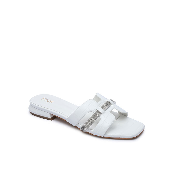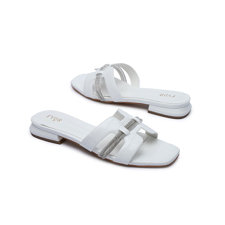 Iconic casual wear flat with unique upper design and crystal embellished strips, goes with every occasion.