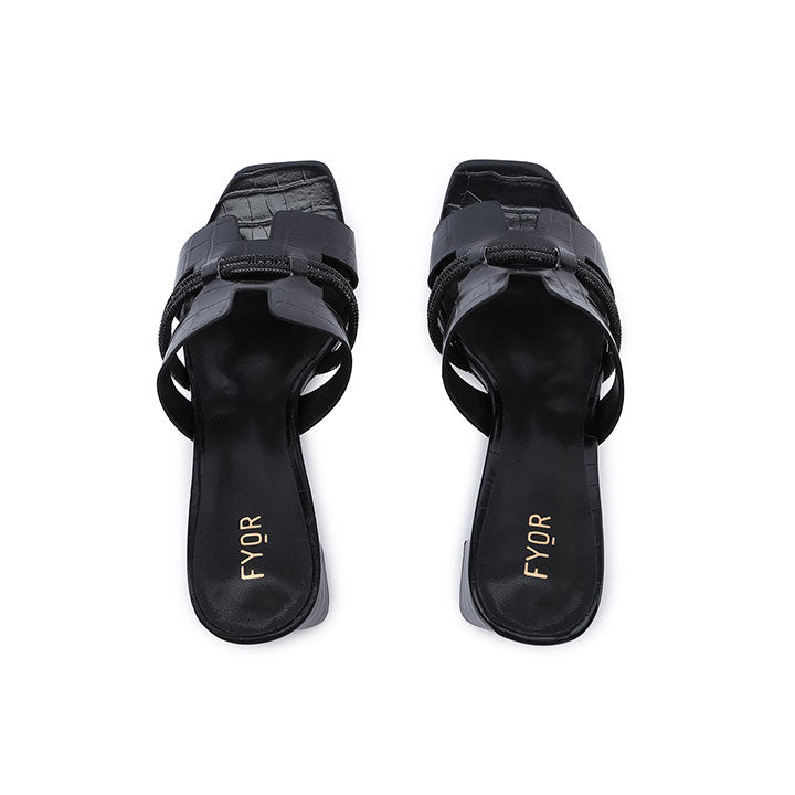 Iconic casual wear mule with unique upper design and crystal embellished strips, goes with every occasion.