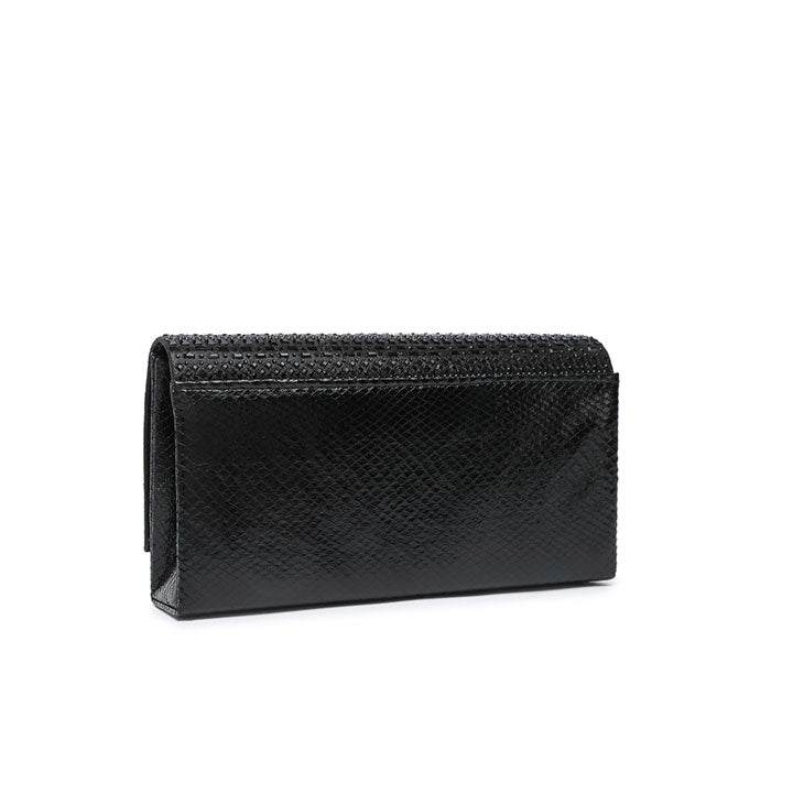 Timeless flap over evening clutch with metallic leather and handcrafted twinkling crystals detailings, featuring magnetic button closure.