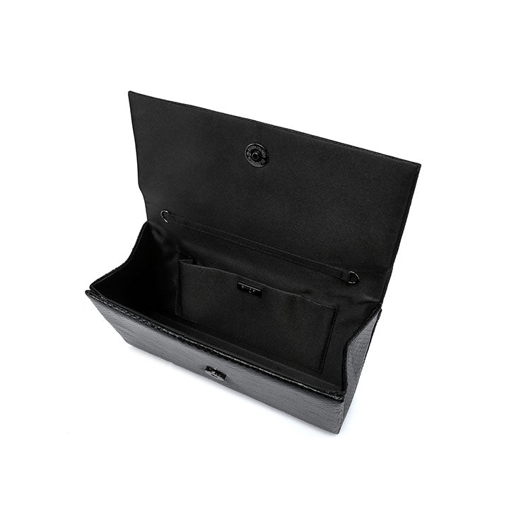 Classic and trendy silhouette, hotfix crystals, satin lining and luxury bags.
