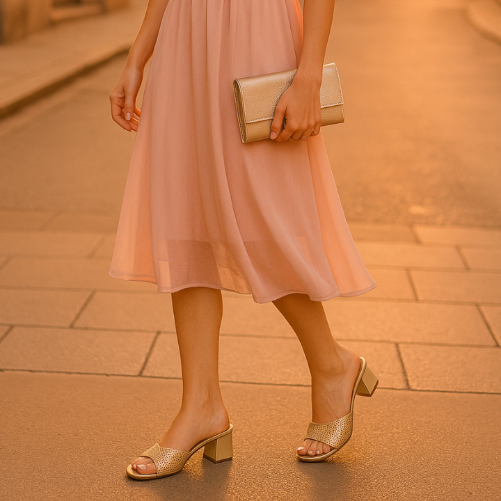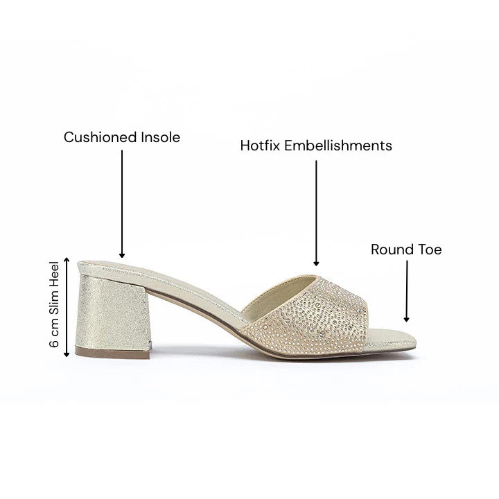 • Introducing the evening mule embellished with crystal drops