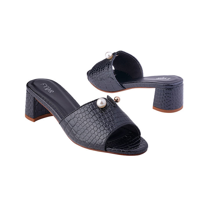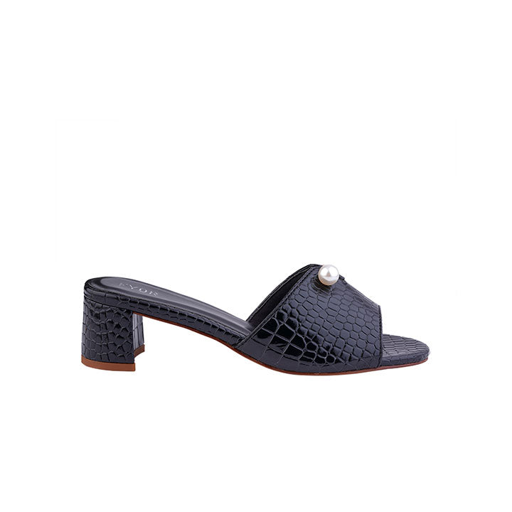 Elevate your look with this elegant block heel mule featuring a textured finish and open-toe silhouette. The design is highlighted with classy pearl and metallic accents, adding a touch of refinement to your everyday or occasion-ready wardrobe.