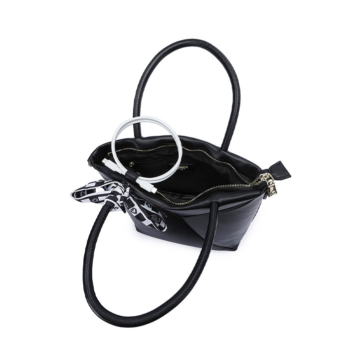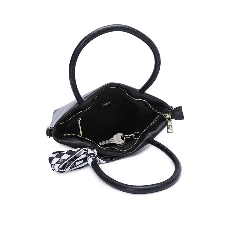 USP : Compact yet functional, feature metal fitting on front and a wrapped scarf detail around the top handle.