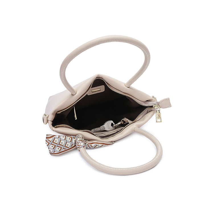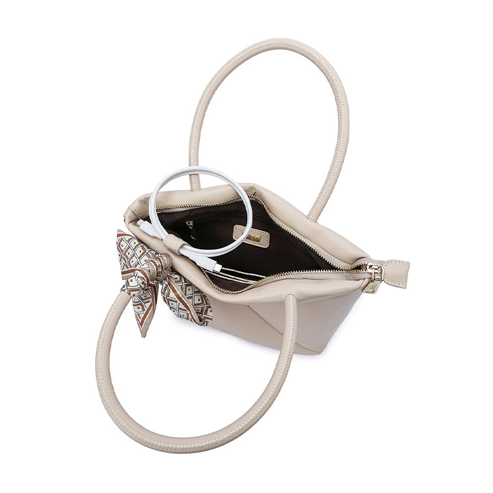 USP : Compact yet functional, feature metal fitting on front and a wrapped scarf detail around the top handle.