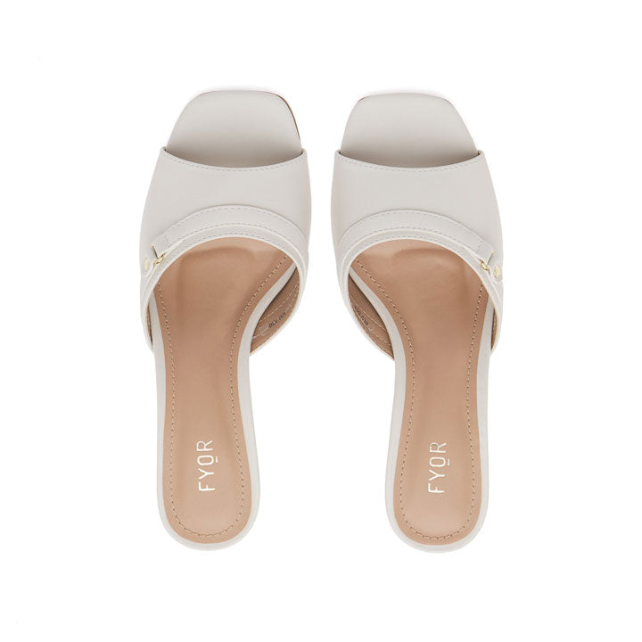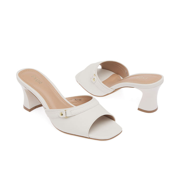 Effortlessly stylish casual square toe mule featuring the metal loop detailing, slip-on style standing on 6.5 cm mid heel.