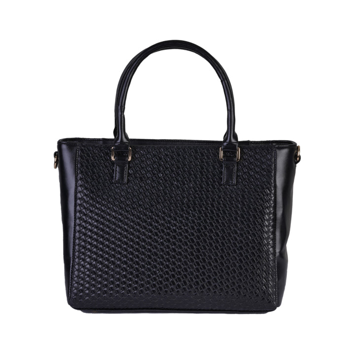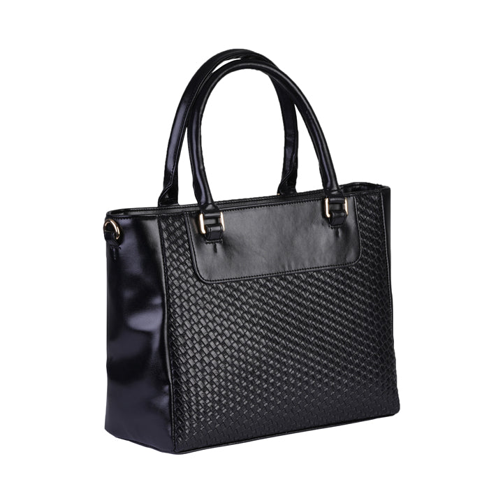 A refined tote with an embossed woven front panel and smooth side panels. Designed with sturdy top handles and sleek hardware, it’s ideal for work or the weekend.