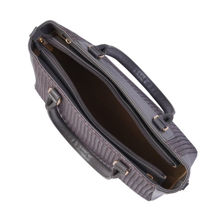 A refined tote with an embossed woven front panel and smooth side panels. Designed with sturdy top handles and sleek hardware, it’s ideal for work or the weekend.