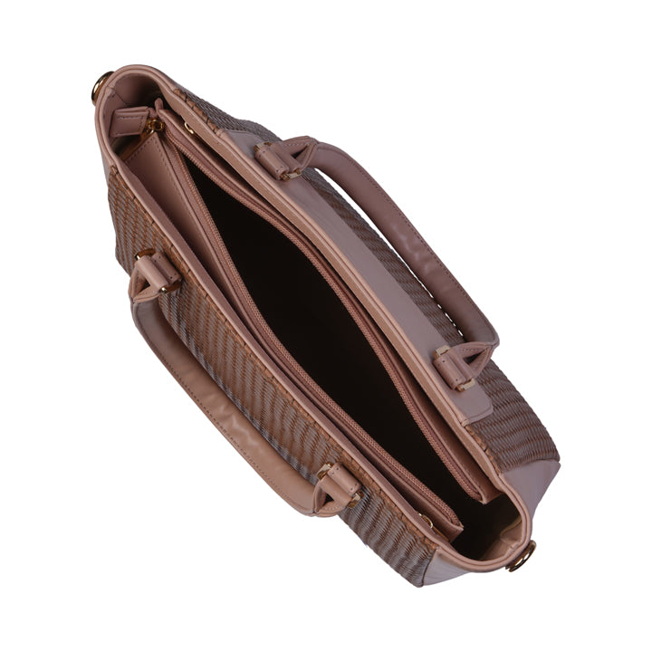 A refined tote with an embossed woven front panel and smooth side panels. Designed with sturdy top handles and sleek hardware, it’s ideal for work or the weekend.