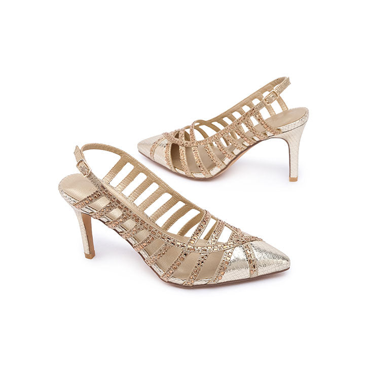 The most seductive shoes of the season, superbly crafted from strips embellished with crystals that encase the foot.