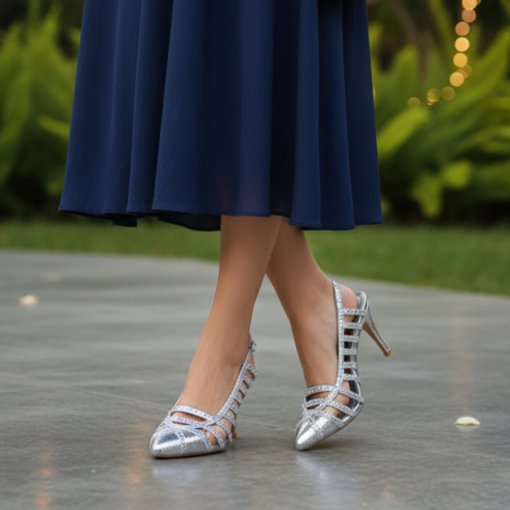 The most seductive shoes of the season, superbly crafted from strips embellished with crystals that encase the foot.