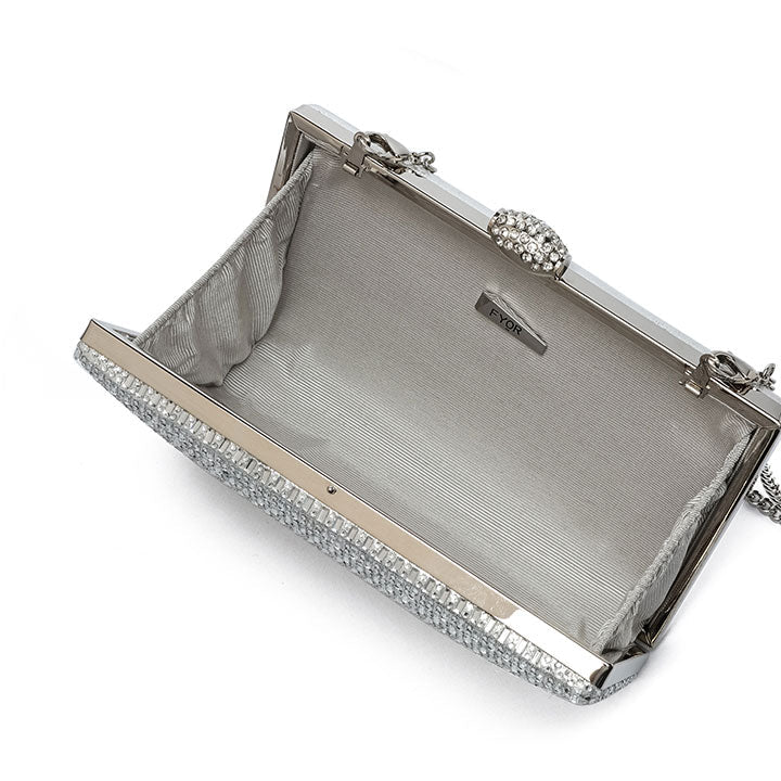 USP - Glamorous crystal-embellished evening bag with a detachable metal-linked crossbody strap for effortless elegance.