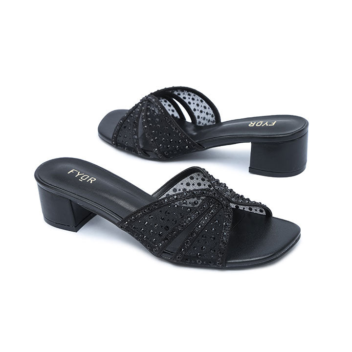 Turn heads in the BB 77 evening mules, designed with a shimmering criss-cross upper and glossy low block heel. Available in luxe metallic tones, this slip-on sandal offers comfort and sparkle perfect for parties, weddings, and special nights out.