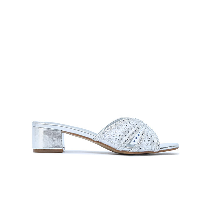 Turn heads in the BB 77 evening mules, designed with a shimmering criss-cross upper and glossy low block heel. Available in luxe metallic tones, this slip-on sandal offers comfort and sparkle perfect for parties, weddings, and special nights out.
