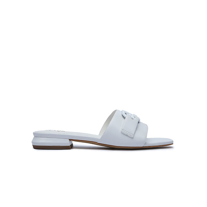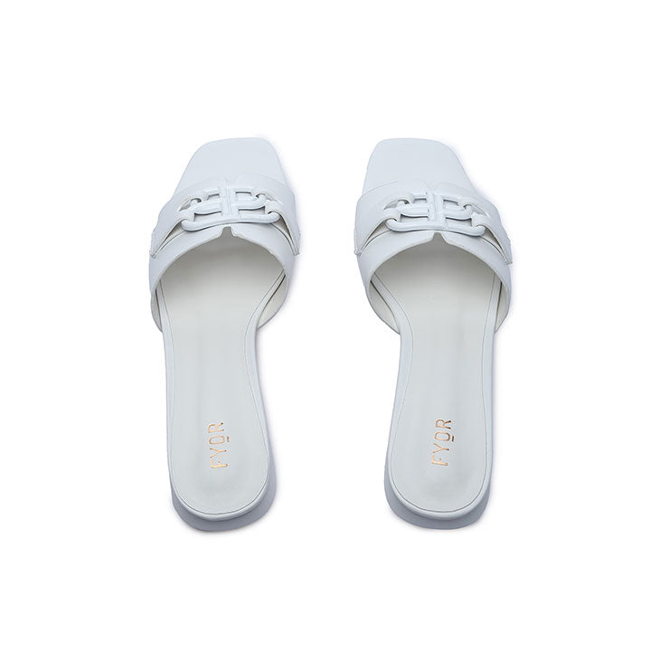 Square toe flat with smooth upper and brooch detailing, perfect for your everyday style.